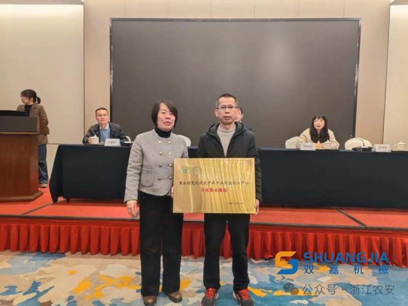 會(huì)期,浙江省農(nóng)業(yè)科學(xué)院農(nóng)業(yè)科技管理專家、國家綠色優(yōu)質(zhì)農(nóng)產(chǎn)品產(chǎn)業(yè)聯(lián)盟浙江中心主任褚田芬研究員為開化縣農(nóng)業(yè)農(nóng)村局頒發(fā)了“國家綠色優(yōu)質(zhì)農(nóng)產(chǎn)品產(chǎn)業(yè)聯(lián)盟浙江中心 開化縣頭雁連”牌匾。(來源:浙江農(nóng)安)